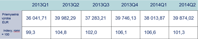 Produktivita práce z tržieb za vlastné výkony a tovar podľa kategórií a špeciálnych zoskupení priemyselných odvetví klasifikácie ekonomických činností (SK NACE Rev.2) v EUR, indexy. Zdroj: Slovstat